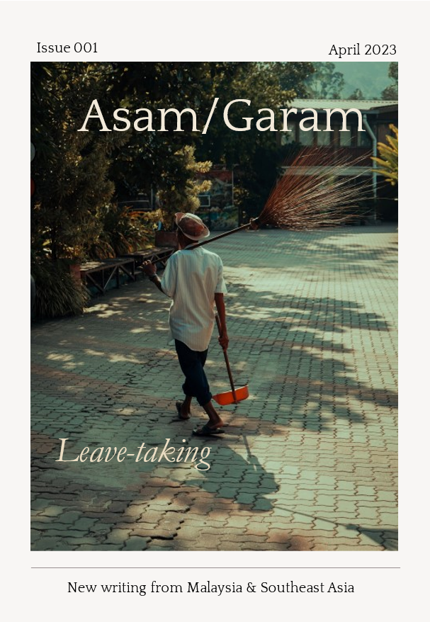 A 40-page PDF of Issue 001 of Asam/Garam Literary Magazine. The theme of Issue 001 is Leave-taking, and features new writing from Malaysia and Southeast Asia. Months of work has been poured into this issue. We hope you enjoy it!